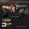 Tri Creatine Malate to suplement diety w postaci proszku, składający się z trzech cząsteczek monohydratu kreatyny połączonych z kwasem jabłkowym.